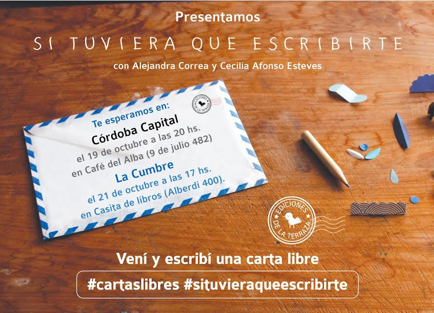 El jueves 19 de octubre, se presentará en Café del Alba “Si tuviera que escribirte” de Alejandra Correa ilustrado por Cecilia Alfonso Esteves, un libro que rescata al género epistolar. Para su lanzamiento, Ediciones de la Terraza lanza una campaña en la que se invita al público a escribir una carta.