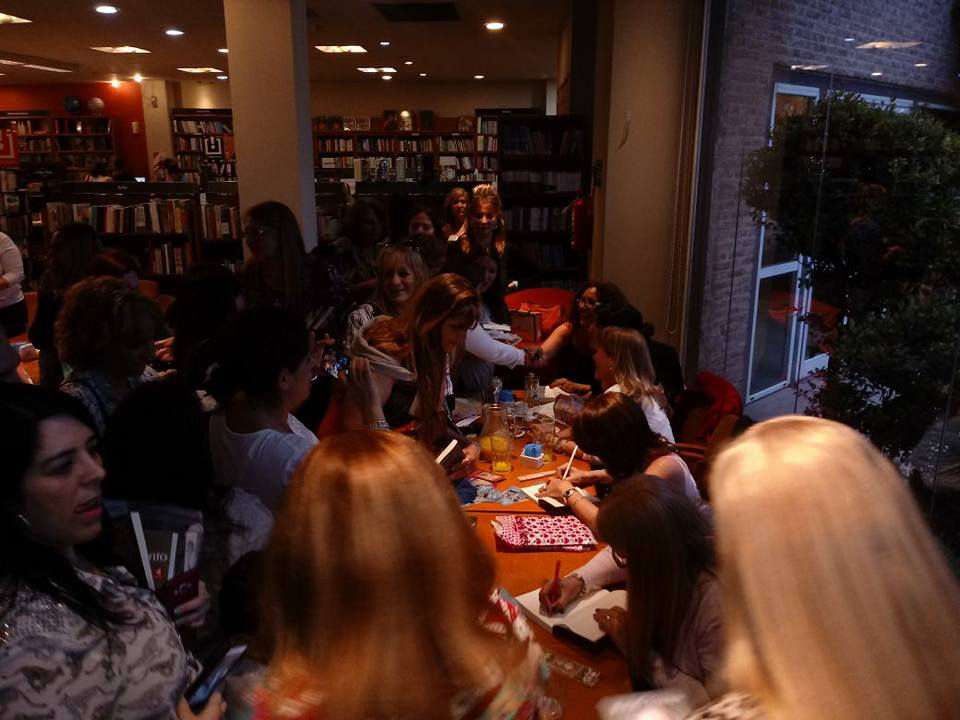 Al finalizar llegó el momento de las fotos y la firma de libros. Las lectoras trajeron tantos ejemplares que algunas vinieron con los clásicos carritos de las compras para cargar allí ese arsenal de títulos.