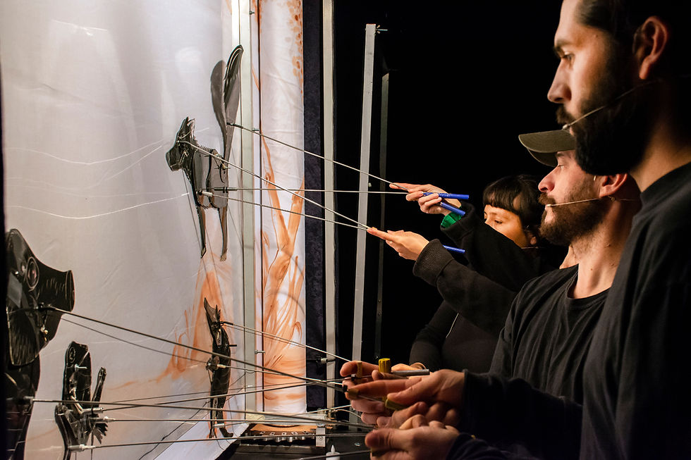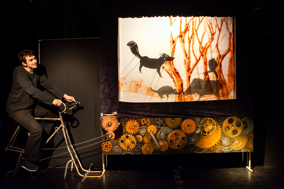 Lo novedoso, o, mejor dicho, el rasgo distintivo de esta obra es que el elenco que la integra decide utilizar una técnica pre-cinematográfica para contar la historia. Los títeres son animados mediante un sistema lumínico. Distintas imágenes se proyectan sobre una pantalla traslucida por donde pasan 34 metros de tela pintada a mano. Cada escena es movilizada por el pedaleo de una bicicleta en vivo.